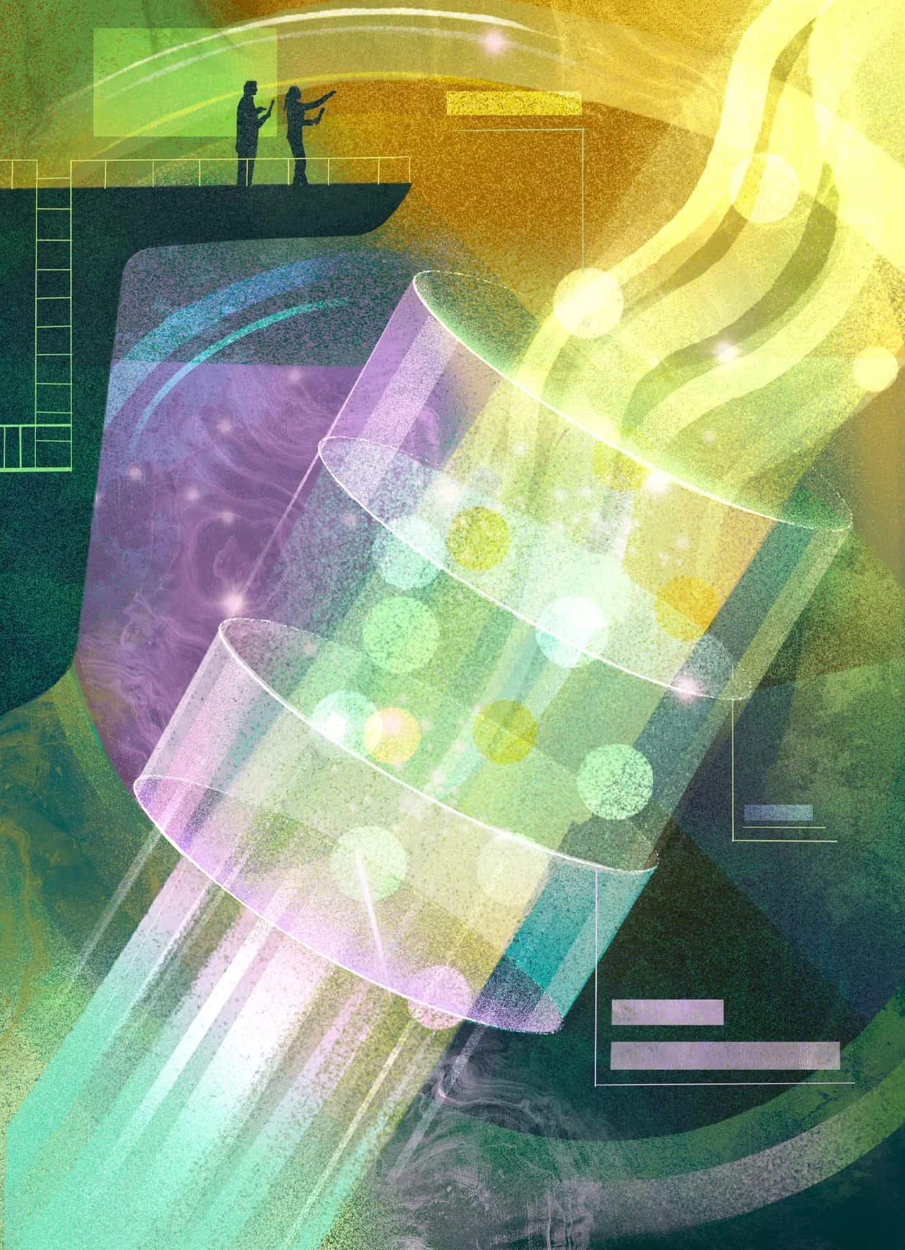 The goal was to translate these scientific concepts into a striking, abstract, and metaphorical visual that complements the story and brings the researchers’ work to life.